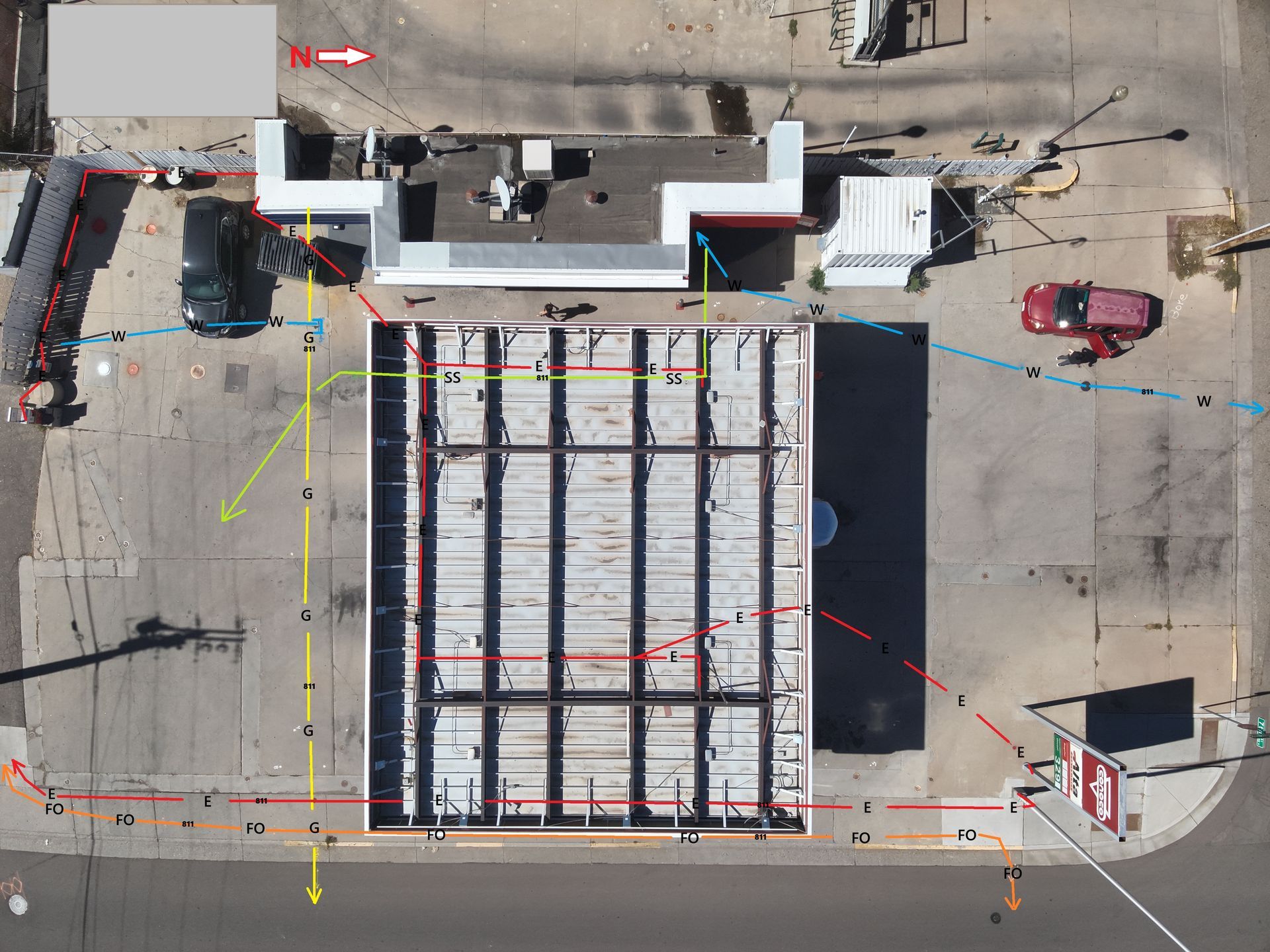 Using aerial photos to create a digital sketch provides an accurate, visual record of each locate or project site. High-resolution drone images capture real-time surface conditions, allowing markings, utilities, and key features to be clearly mapped and overlaid for precise documentation.